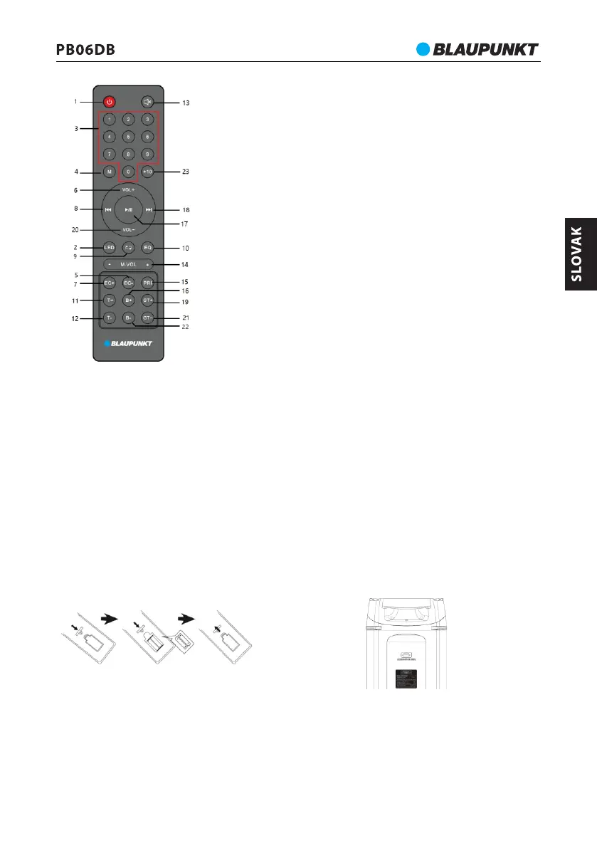 b. Citlivosť diaľkového ovládača sa bude s vybíjaním batérií zmenšovať. Vybité batérie vymeňte na nové/nabité.