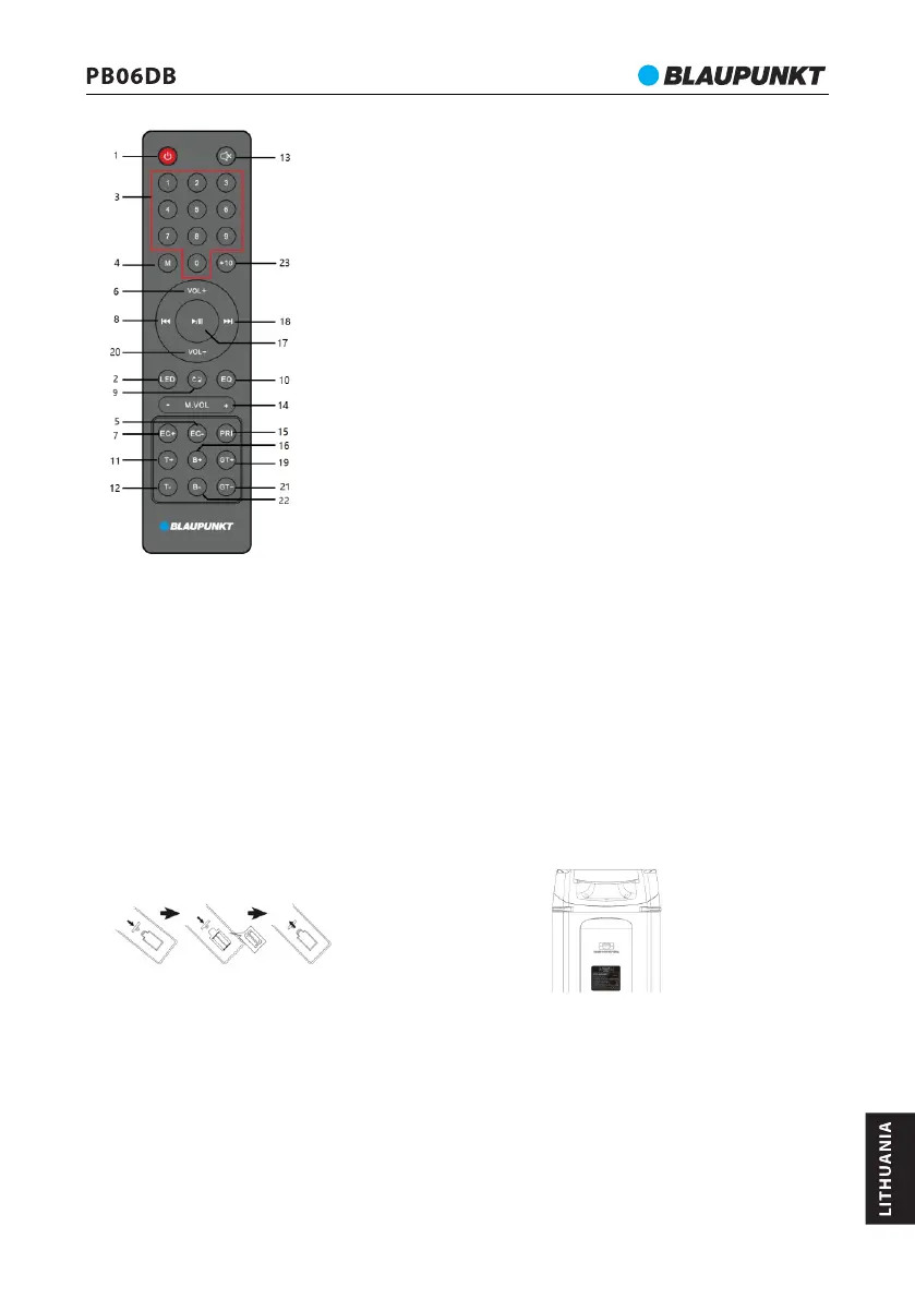 b. Nuotolinio valdymo pulto jautrumas išsikrovus baterijai taps silpnesnis. Išnaudotas baterijas reikia iškeisti naujomis.