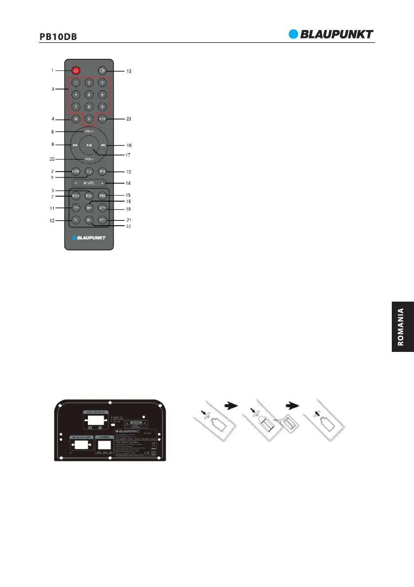 b. Sensibilitatea telecomenzii va slăbi pe măsură ce bateriile se vor descărca. Bateriile uzate trebuie înlocuite cu altele noi.