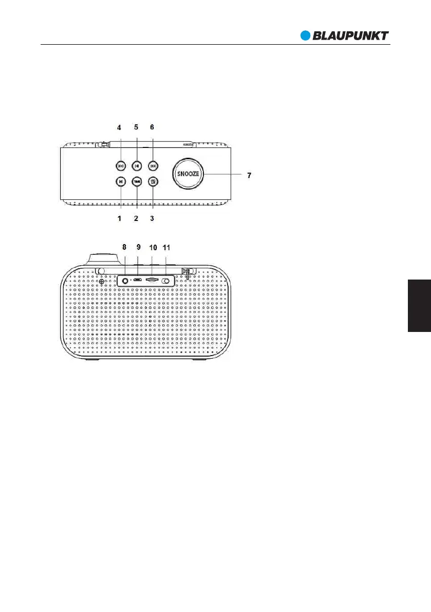 7-----Pokrętło głośności/drzemka/przyciemnienie 8-----Gniazdo AUX