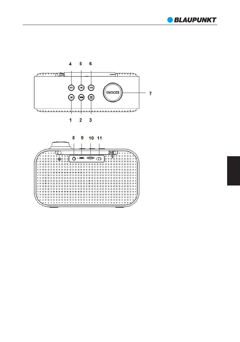 3-----Tlačidlo budíka (Alarm) 4-----Tlačidlo “Predchádzajúce”