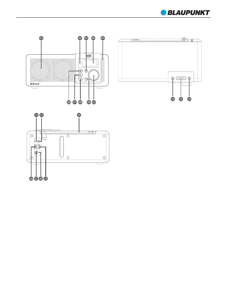 18 – Toitenäidik LED. 19 - USB-port.