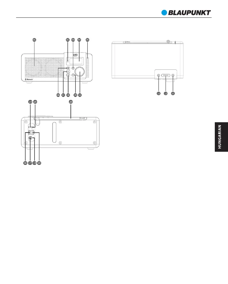 18 - LED tápjelző lámpa. 19 - USB csatlakozó.