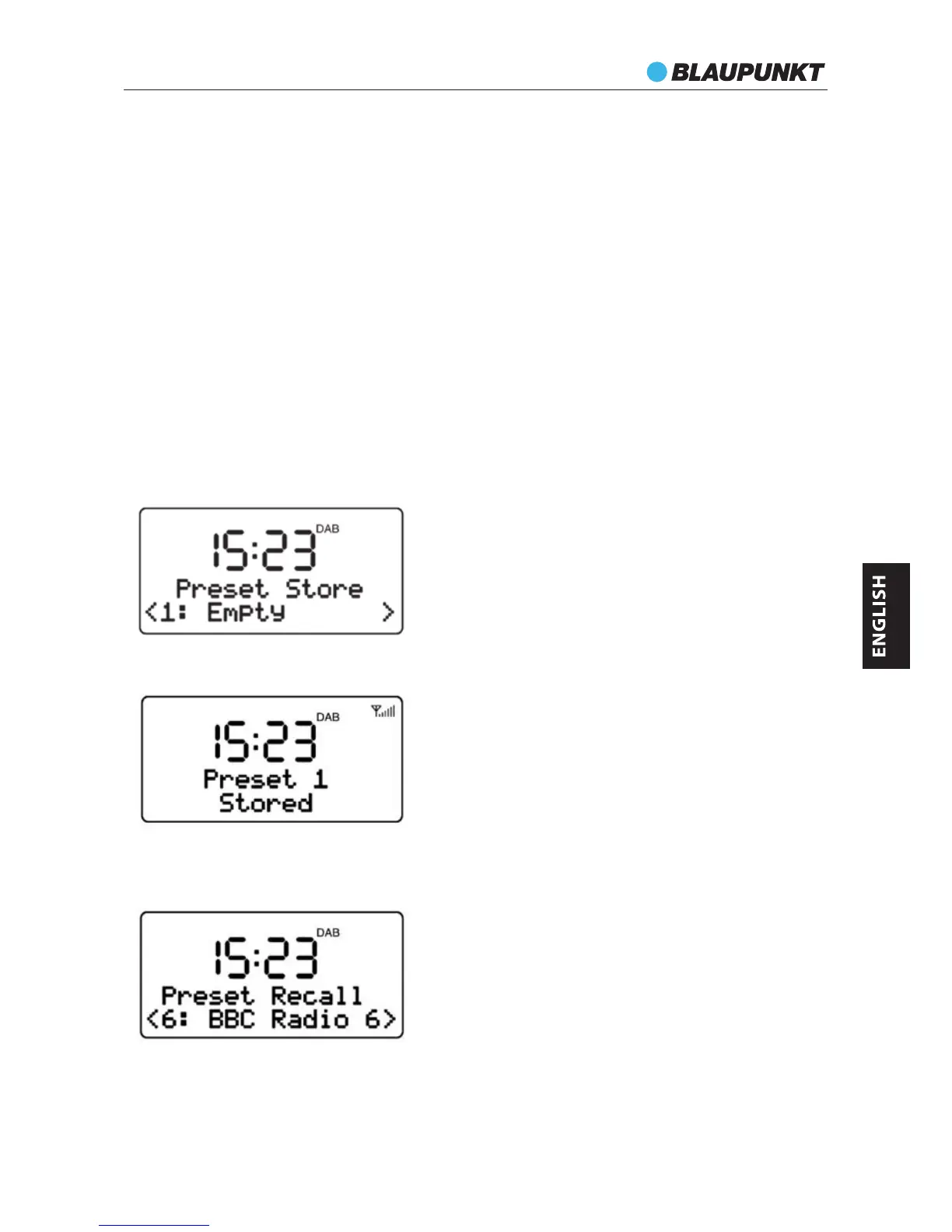 1. Short press the PRESET button during DAB mode to enter the preset memory selecting