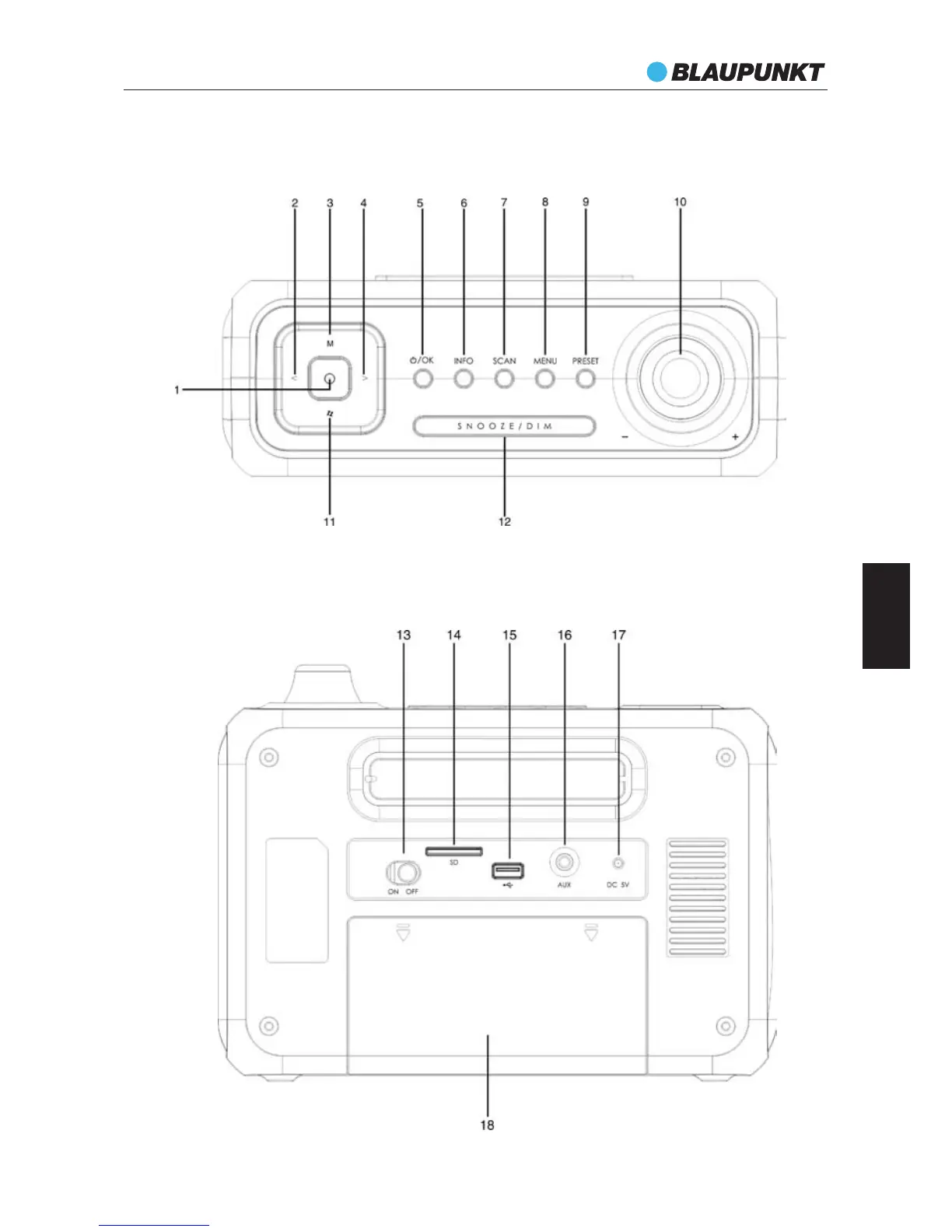 Blaupunkt PP15DAB - Lokalizacja Elementów Sterowania; Widok Z Góry; Widok Z Tyłu
