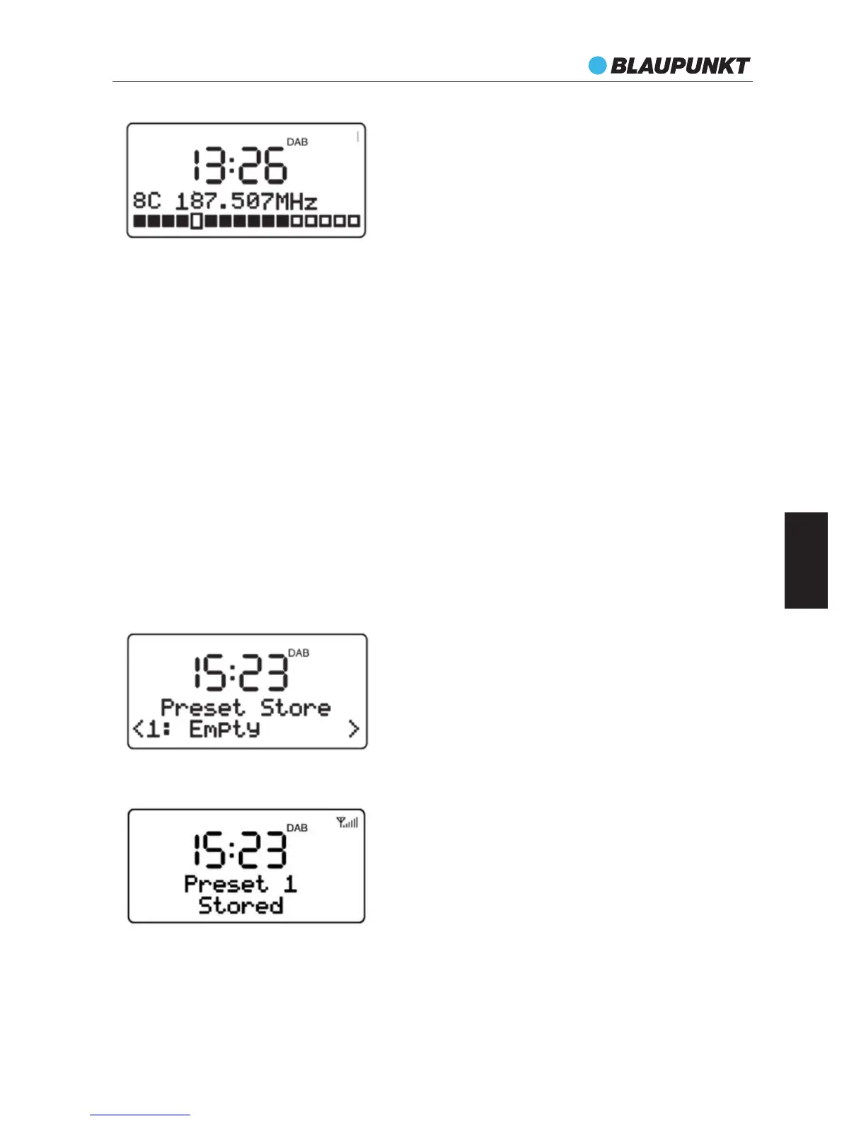 1. Naciśnij krótko przycisk PRESET w trybie DAB, aby uruchomić tryb wyboru