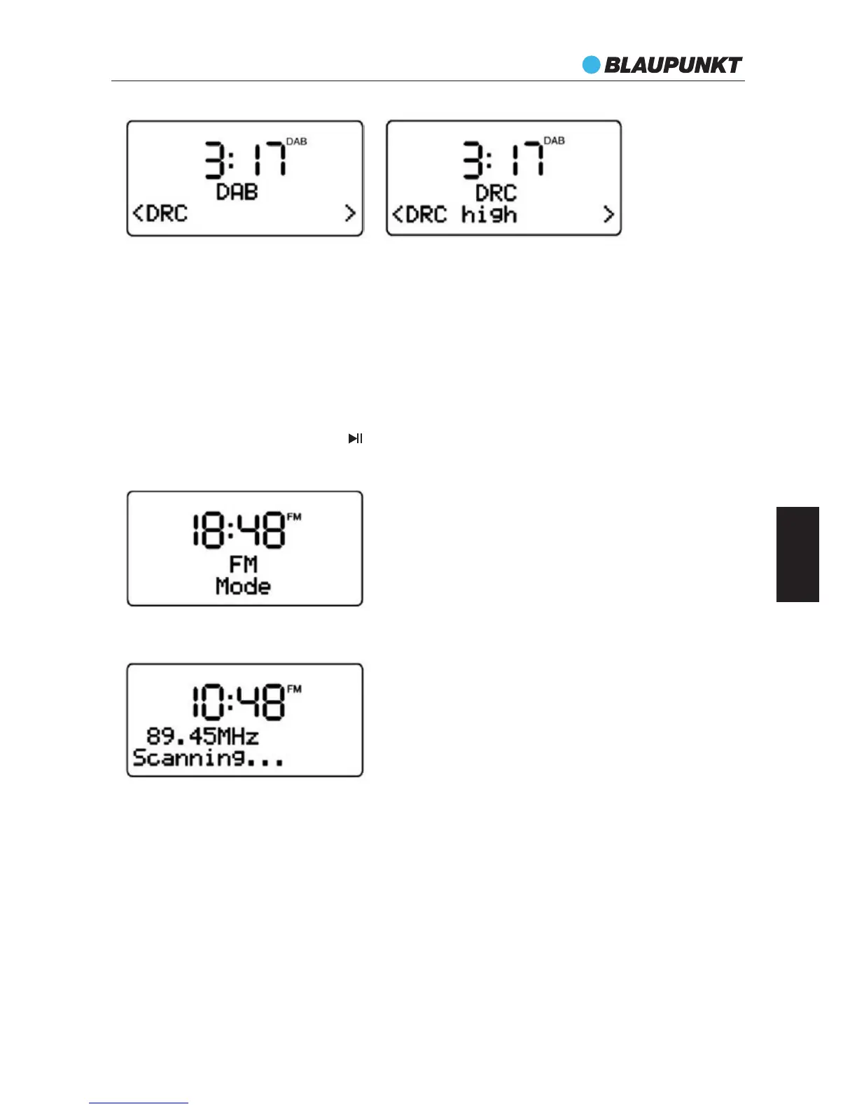 4. Naciśnij przycisk SCAN lub naciśnij i przytrzymaj przycisk „<”/ „>”, aby wyszukać stację;