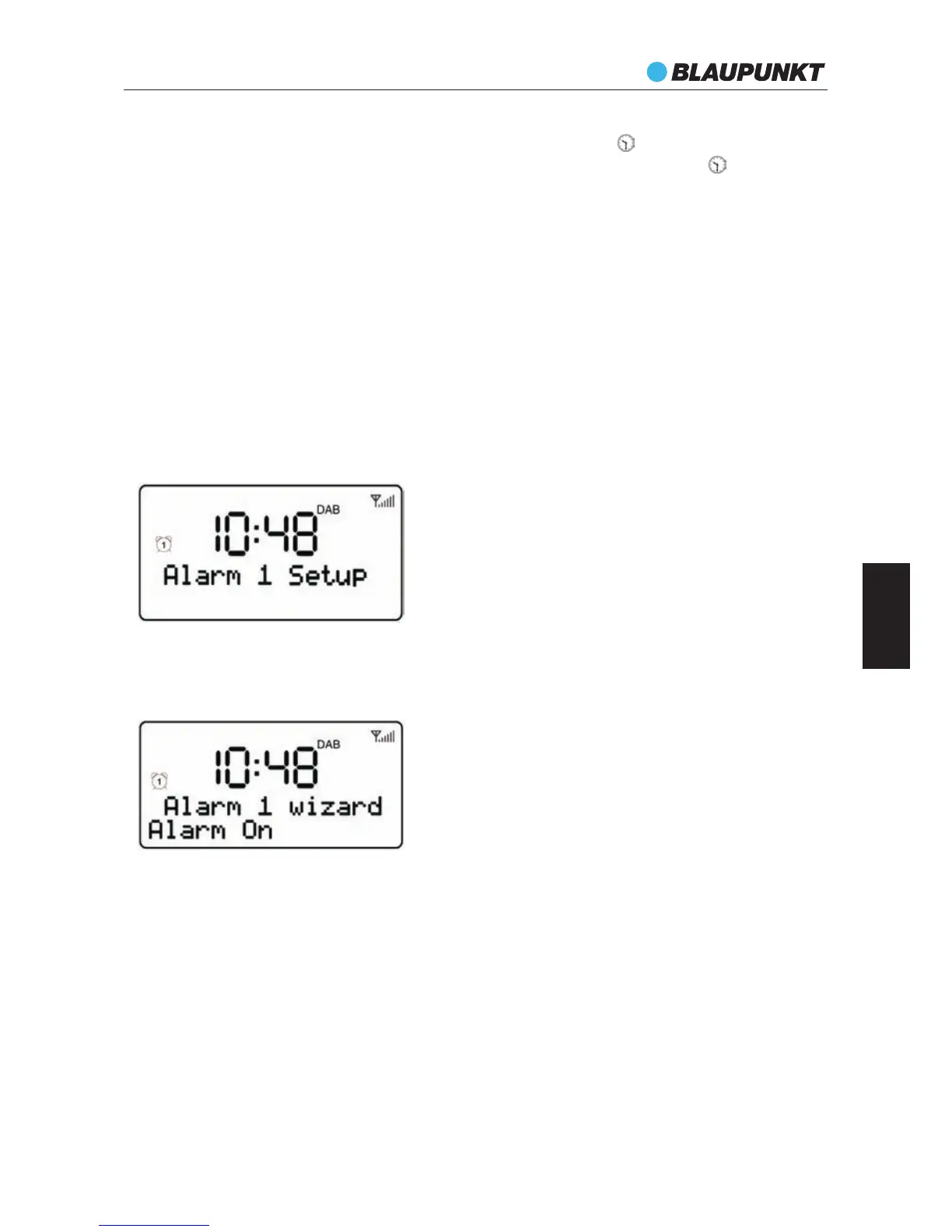 menu Alarm 1; w międzyczasie ikona alarmu 1 miga na wyświetlaczu.