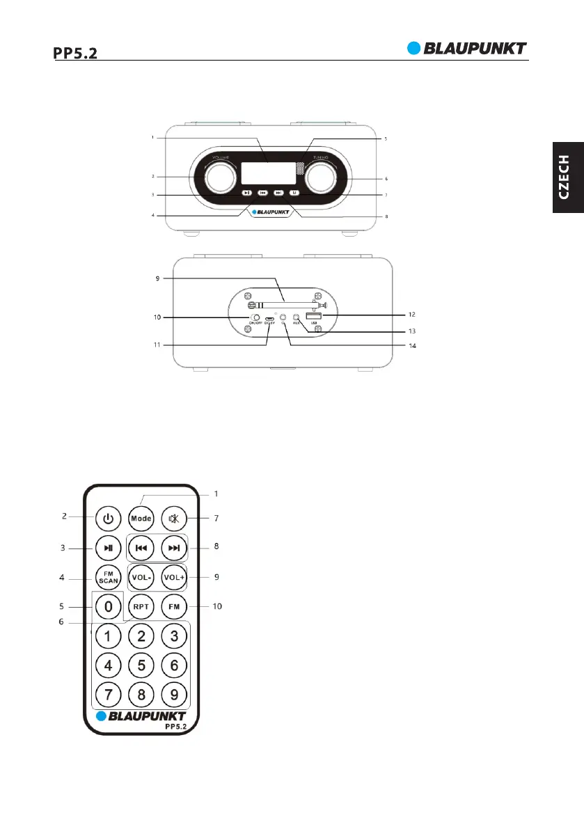 7- Režim posun 8- Vpřed 9- FM anténa