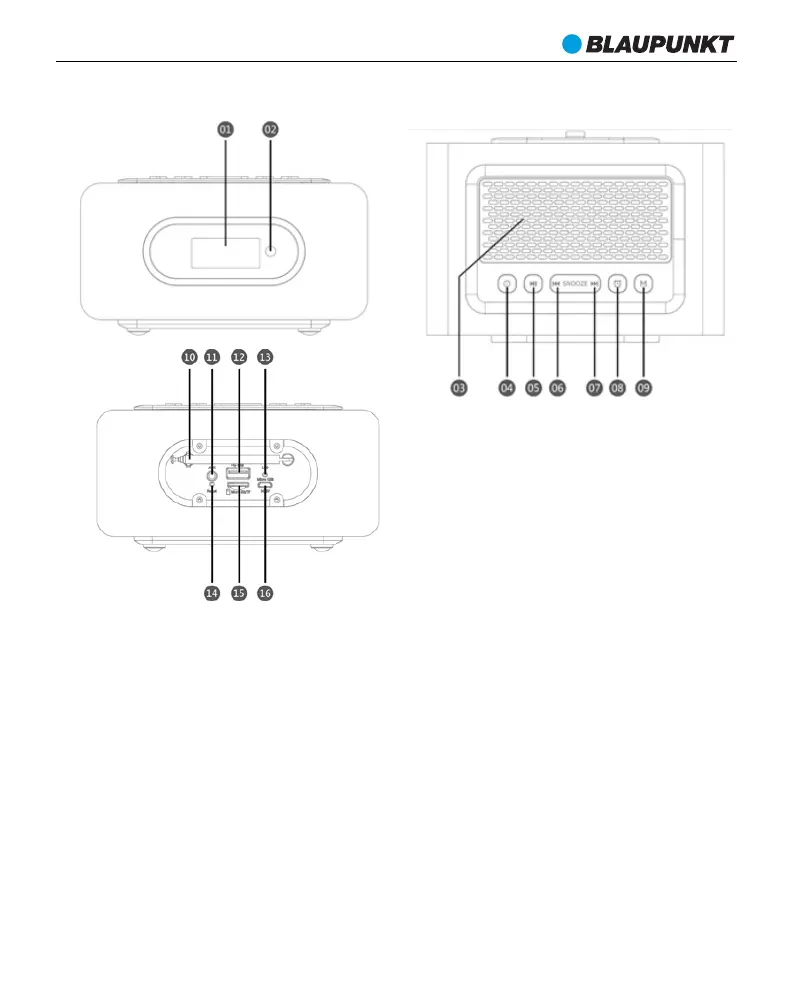 09 - Бутон за режим на възпроизвеждане USB / micro SD / FM / AUX IN.