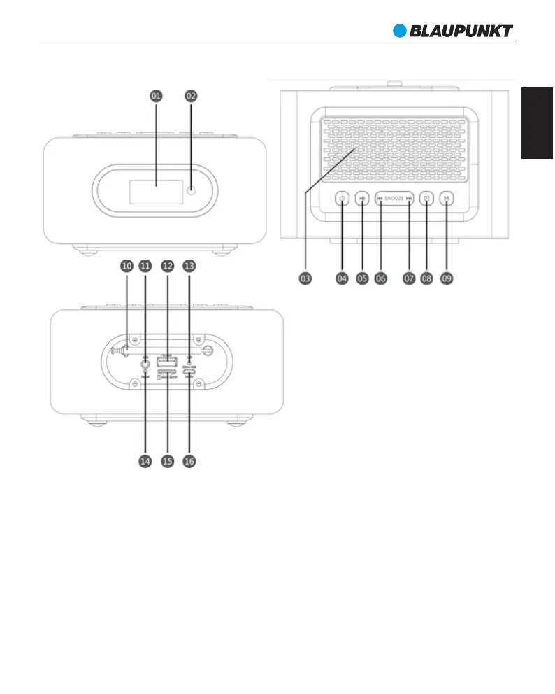 09 - Przycisk trybu odtwarzania USB / microSD / FM / AUX IN.