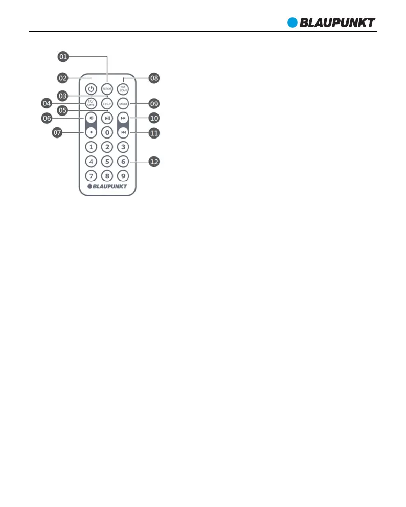 07— Hangerő csökkentése. 08— FM keresés gomb.