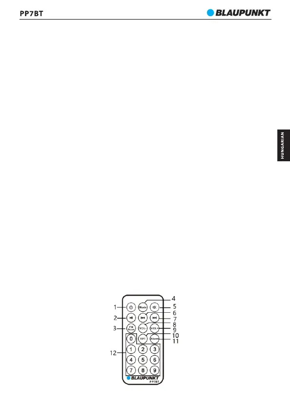 több zeneszám található. Például, ha a 105. dalt kívánja lejátszani, nyomja meg a távvezérlő 1-es,