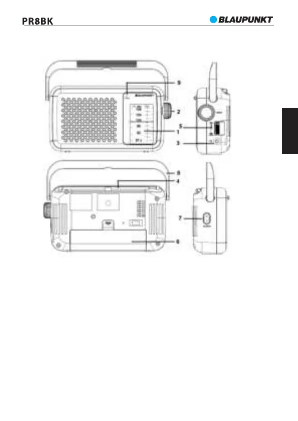 6- Az elemtartó rekesz, 7- AC csatlakozóaljzat, 8- Fogantyú,