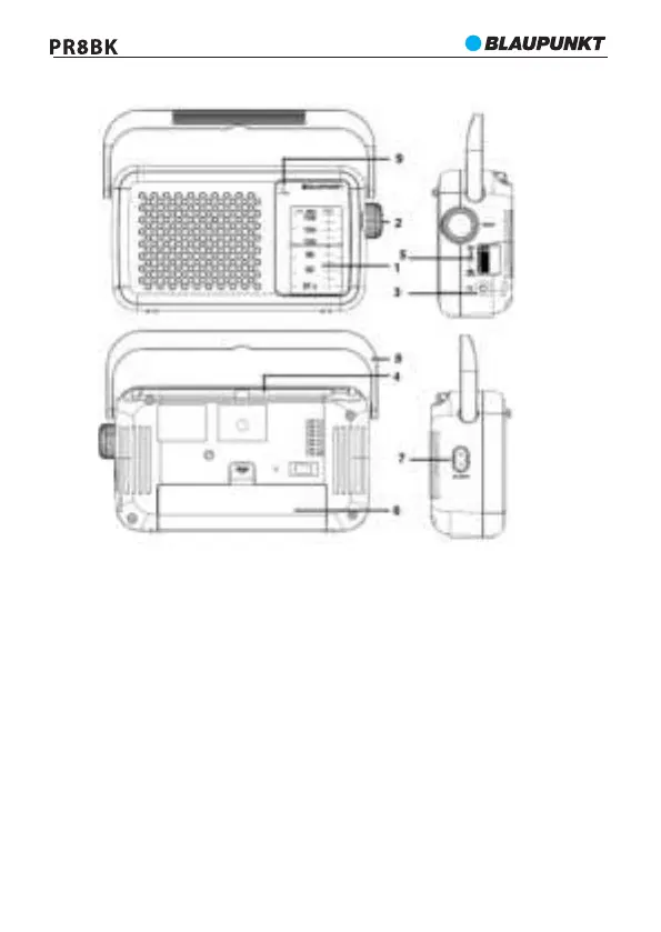 1- Skala frekvencije, 2- Tipka za podešavanje, 3- Utičnica za slušalice, 4- Antena