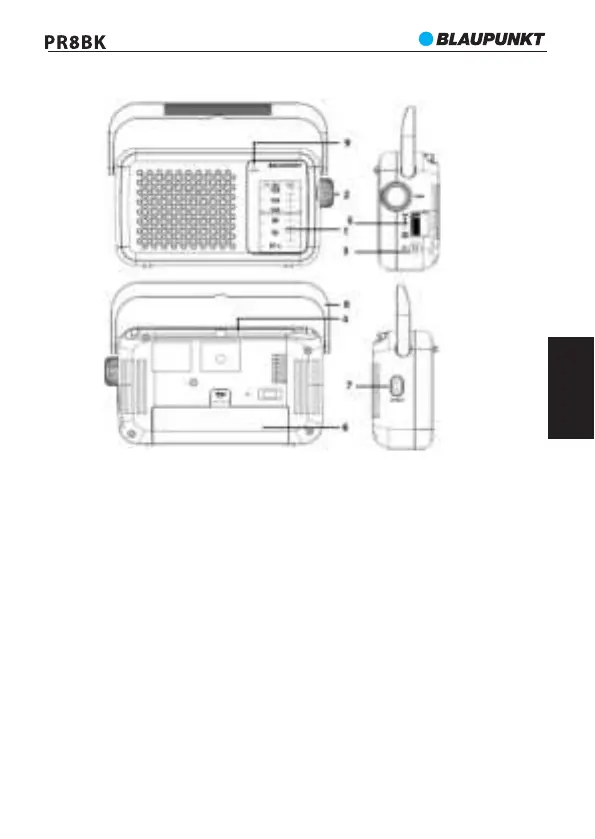 6 - Compartiment baterii, 7 - Priză electrică, 8 - Mâner