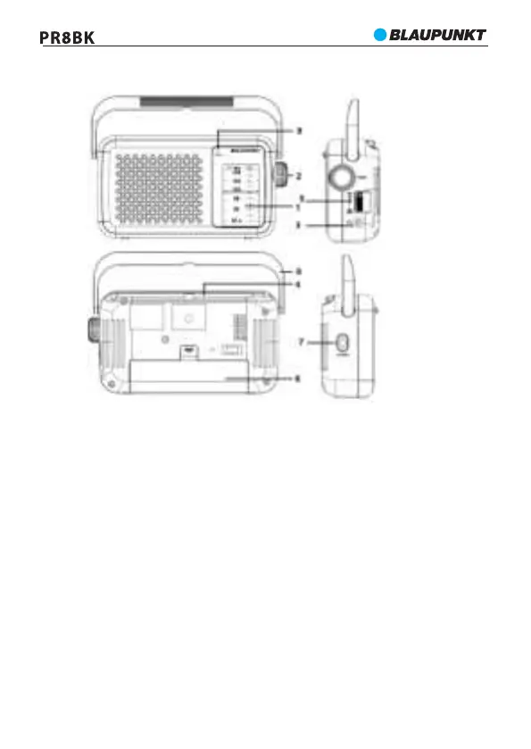 4 - Κεραία, 5 - Ενεργοποίηση/απενεργοποίηση τροφοδοσίας, ποτενσιόμετρο έντασης ήχου