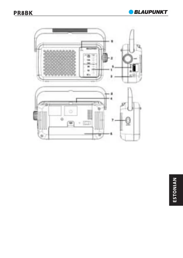 1- Sageduste skaala, 2- Häälestusnupp, 3- Kuularite väljund, 4- Antenn
