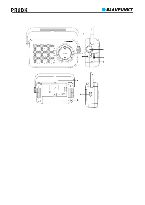 4 - Κεραία, 5 - Ενεργοποίηση/απενεργοποίηση τροφοδοσίας, ποτενσιόμετρο έντασης ήχου