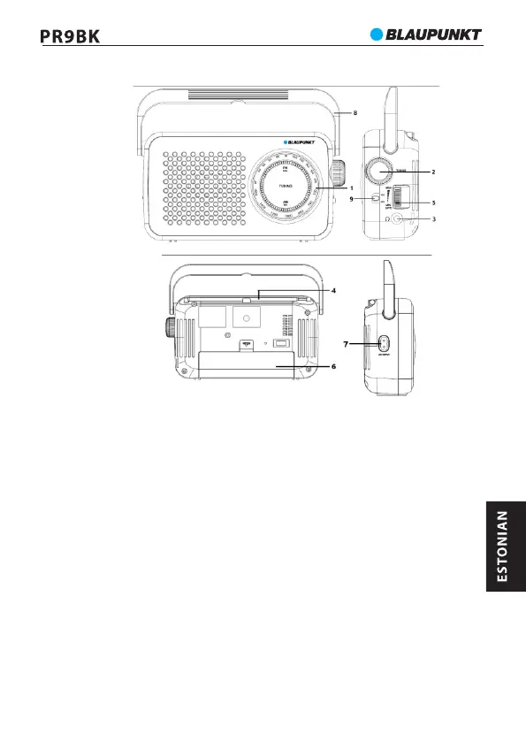1- Sageduste skaala, 2- Häälestusnupp, 3- Kuularite väljund, 4- Antenn