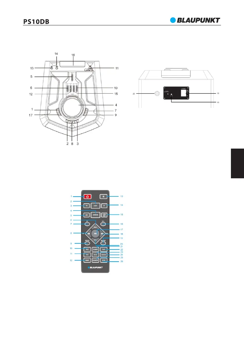 16 - Stražnji panel za disko rasvjetu; 17- Tipka za smanjivanje jačine zvuka;