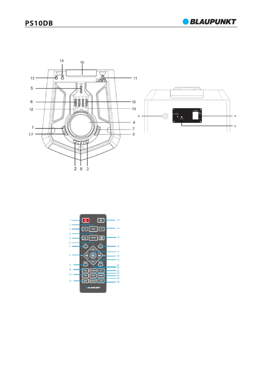 116 – Panou -spate al luminilor disco; 17- Buton mut;