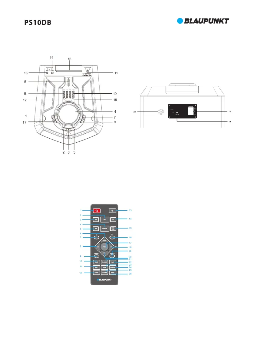 16 - Οπίσθιο πάνελ φωτός ντισκοτέκ· 17- Κουμπί σίγασης ήχου·