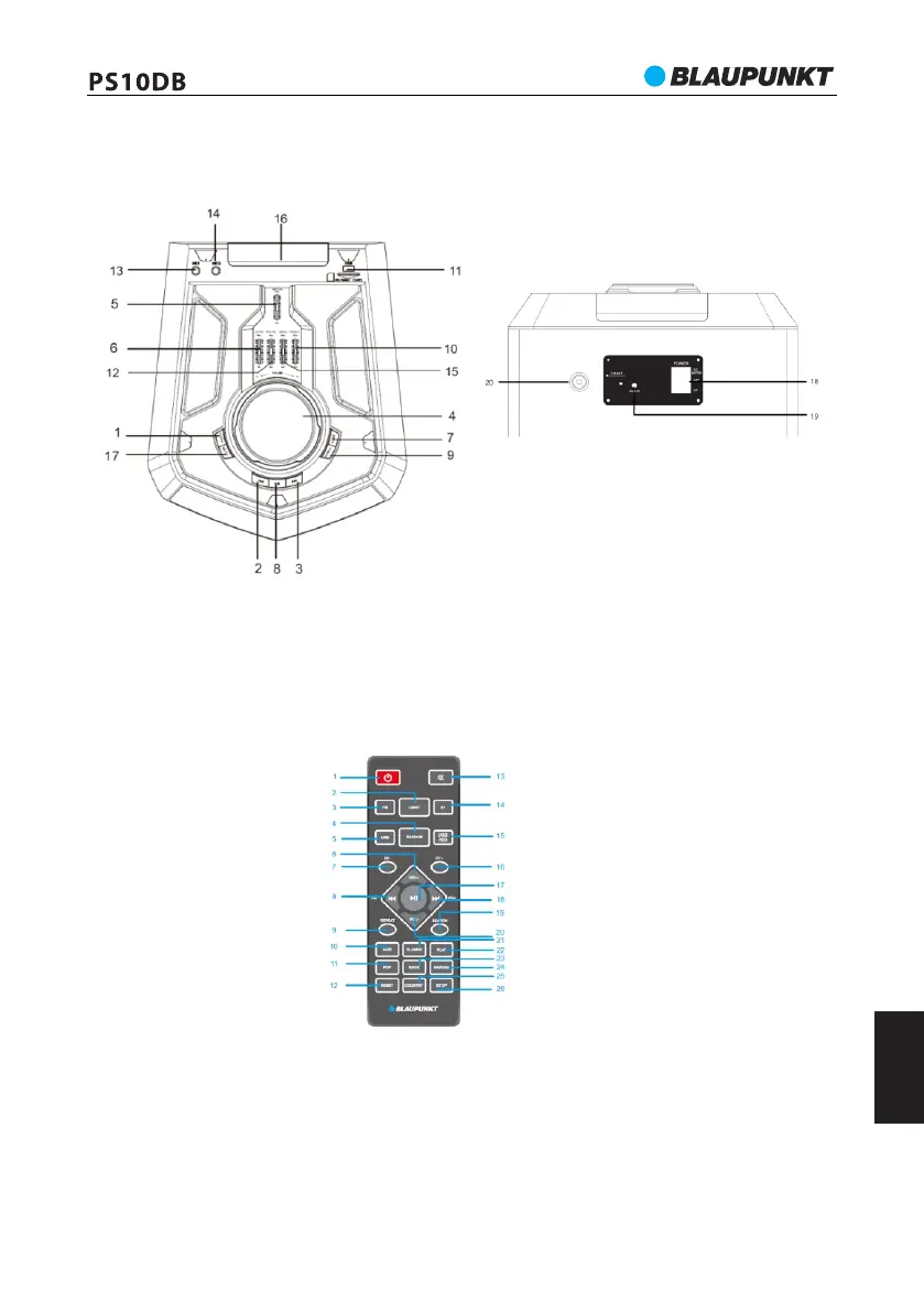 10,11,21,22,23,25- EQ režiimi nupud (Jazz / POP / Classic / Flat / Rock / Country)