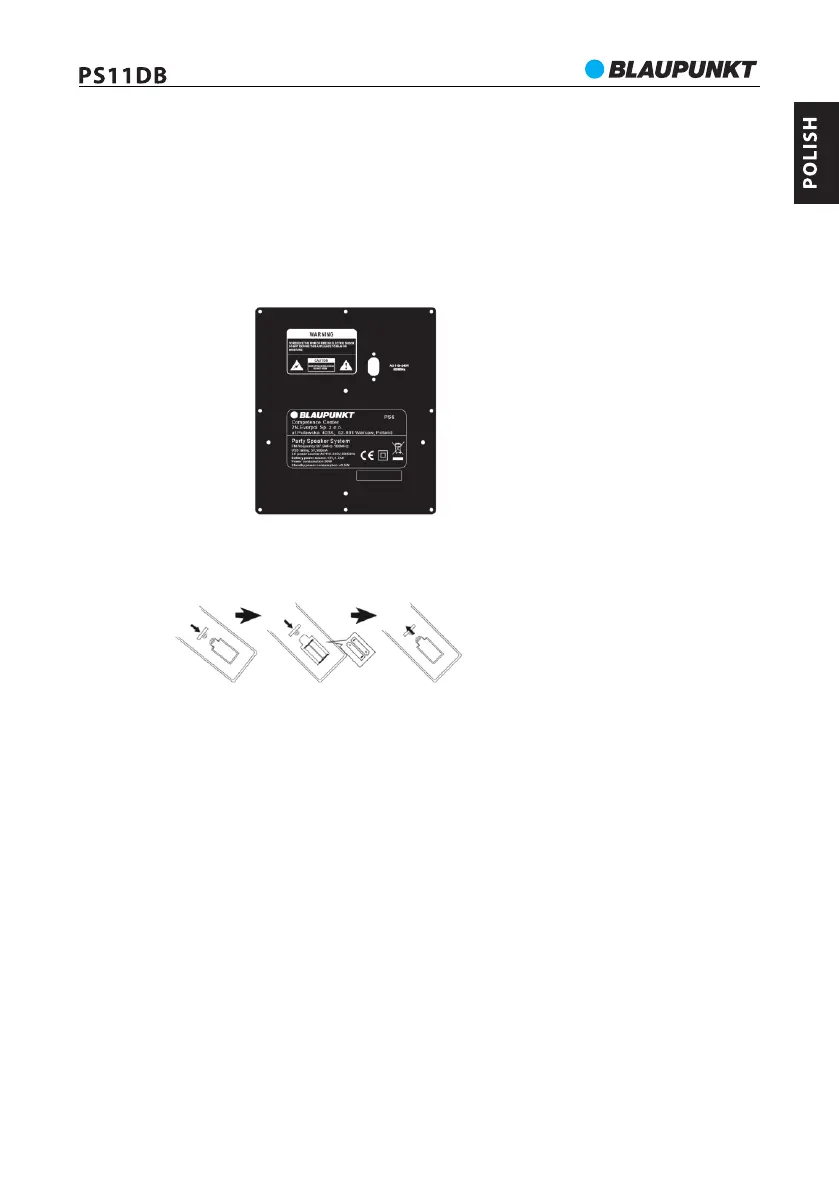 Otwórz pokrywę komory baterii i włóż 2 baterie typu AAA ( w zestawie); Upewnij się, że układ baterii będzie zgodny z
