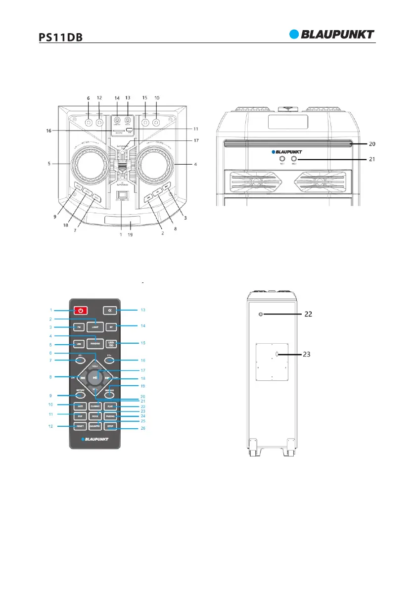 22- Priză pentru antenă FM; 23- Priză pentru cablu de alimentare AC;