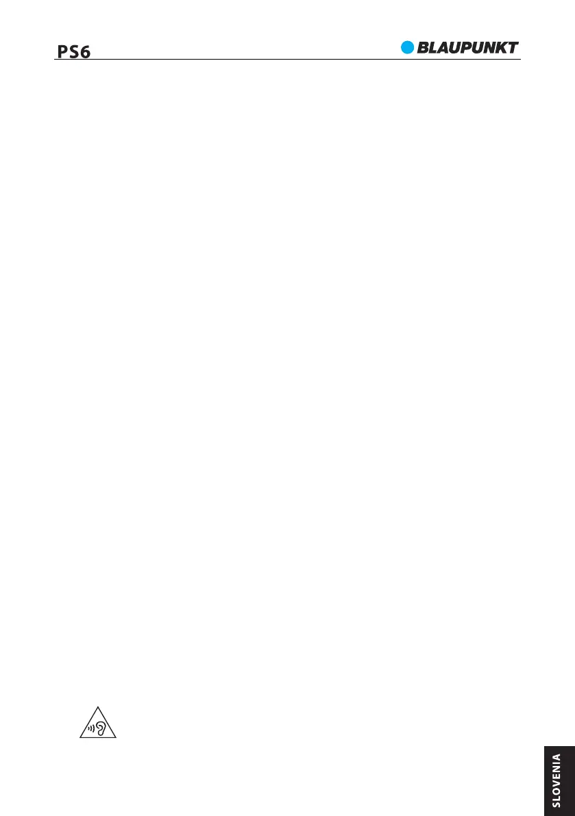 17. Da bi preprečili nevarnost izgube sluha, glasne glasbe ne poslušajte dlje časa.