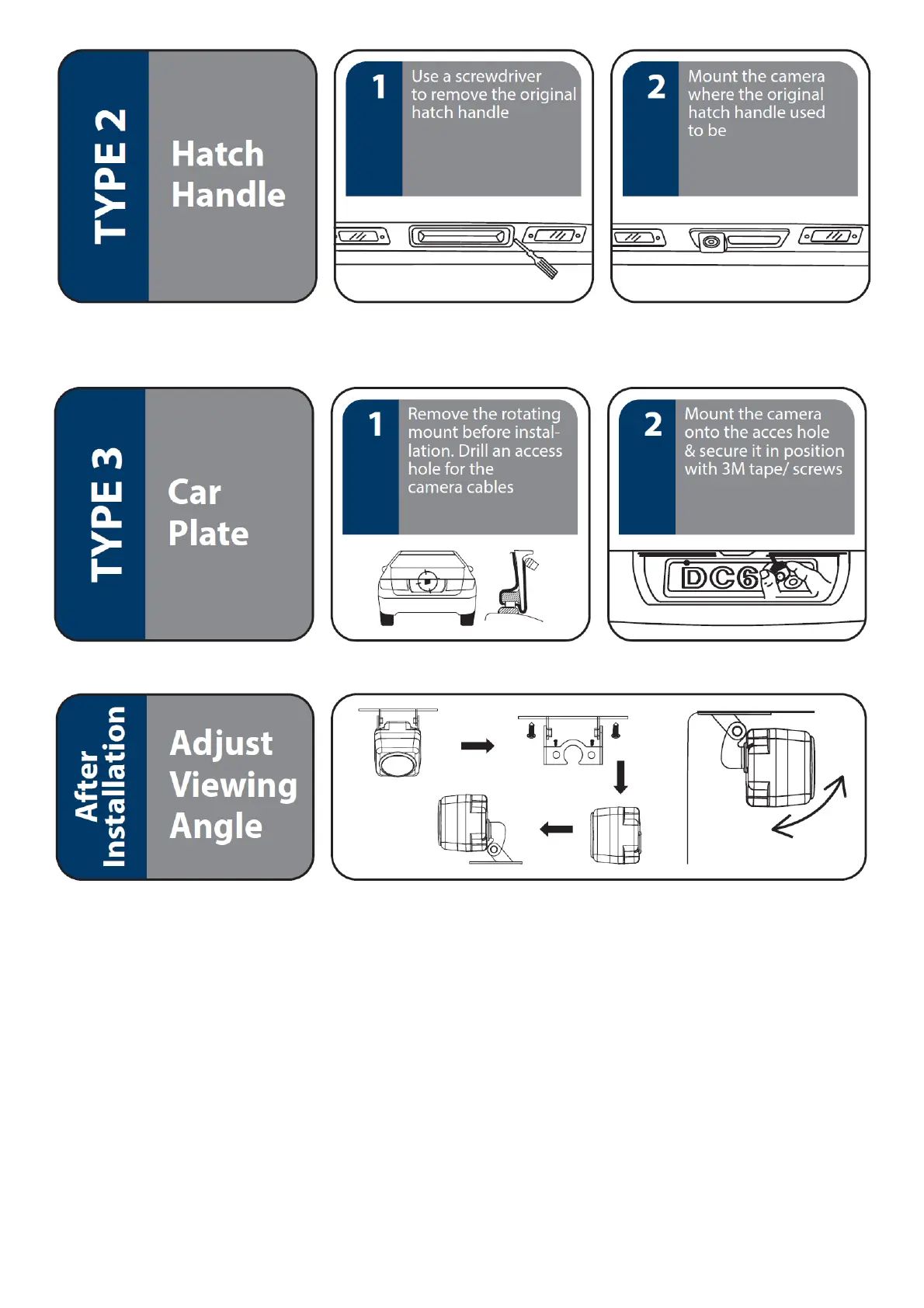 2. Mount the camera onto the acces hole & secure it in position with 3M tape/ screws