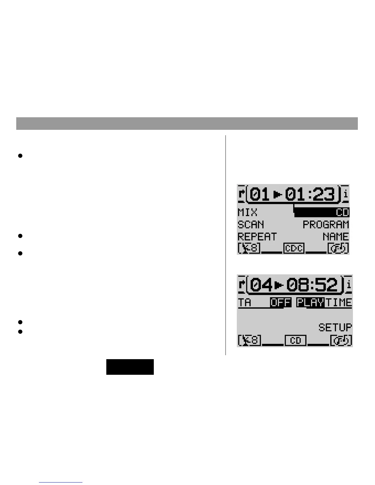 Starting CD playback for the integrated CD player (no CD changer connected)