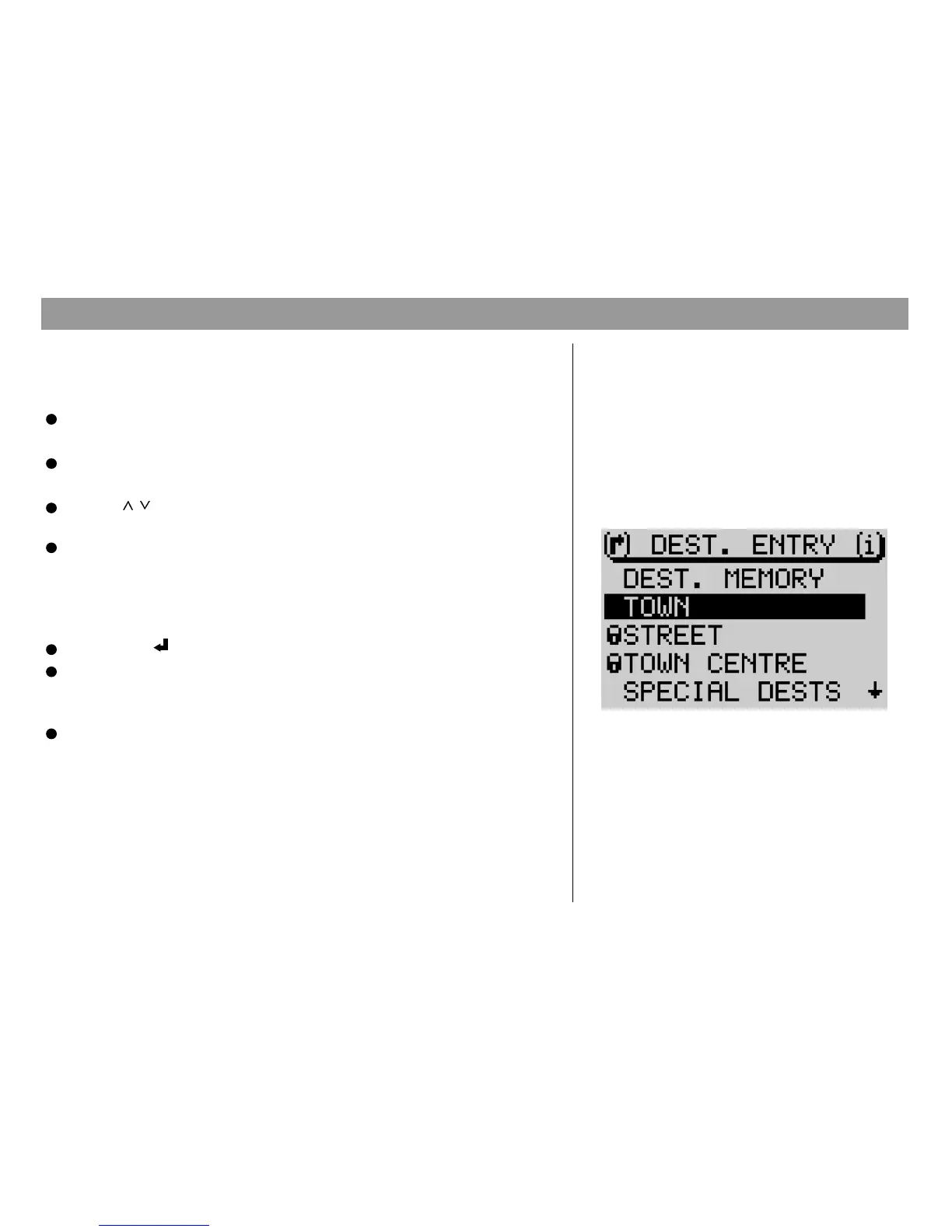 Destination entry - Town