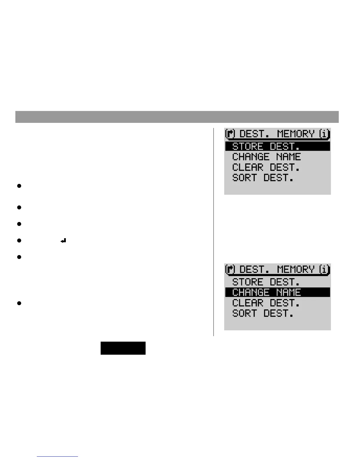 in the destination memory menu.