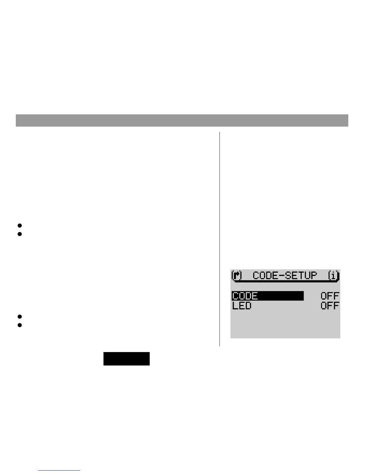 The code-LED will be activated/deactivated. The current setting will appear be-