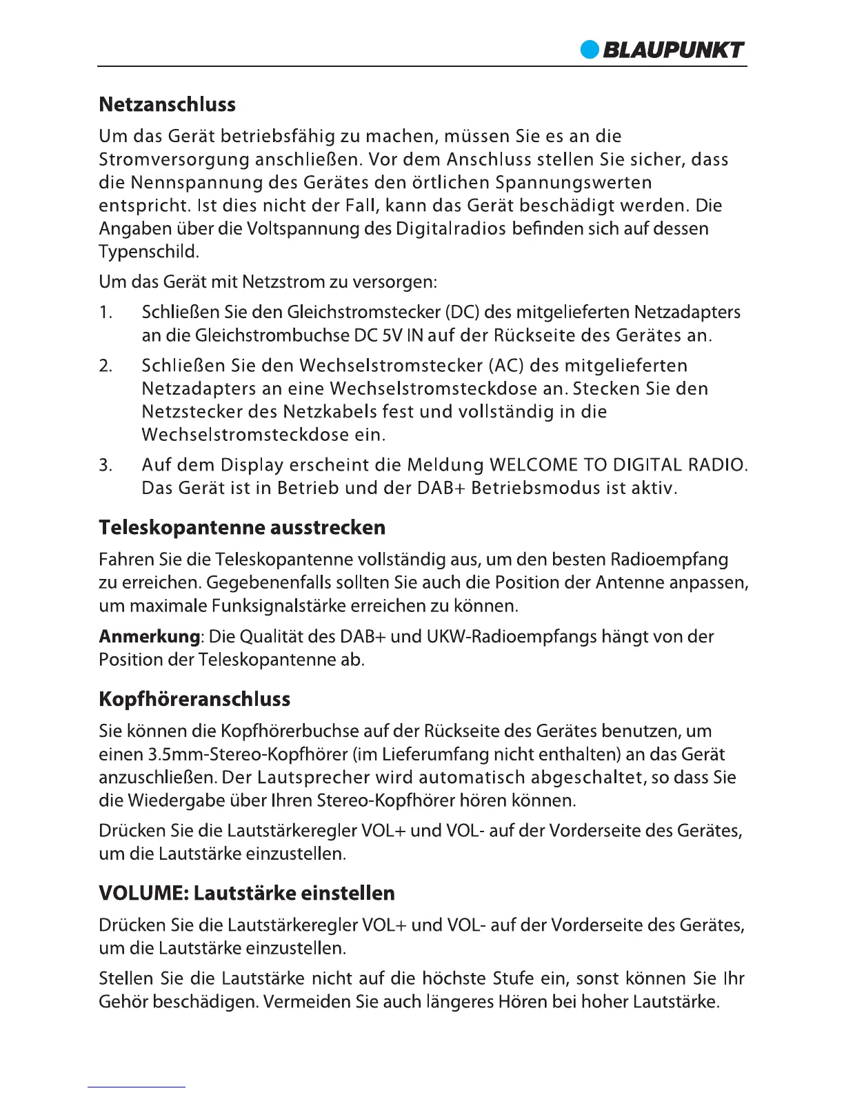Blaupunkt RX+ 12 - Core Operations; Mains Power and Antenna Adjustment