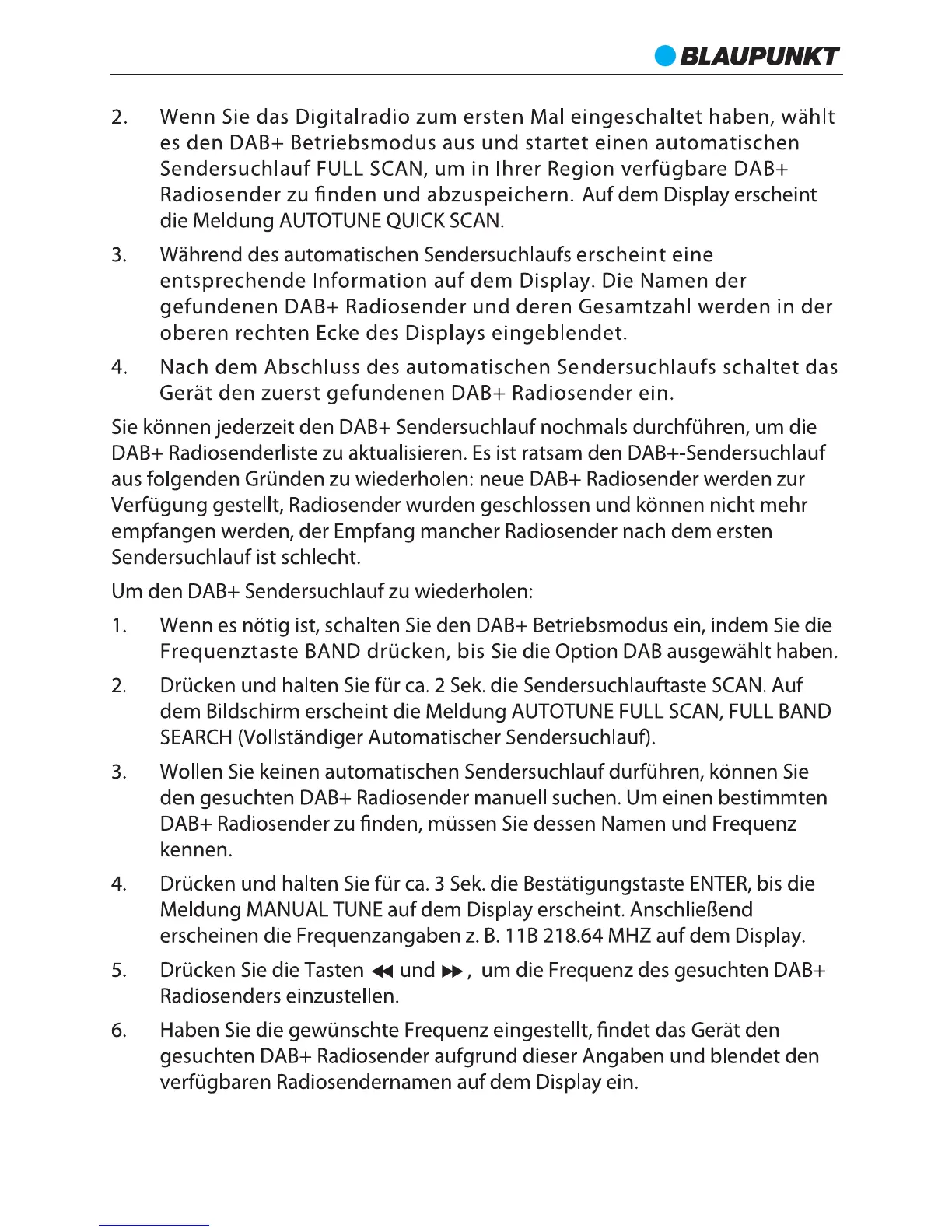 Blaupunkt RX+ 12 - DAB+ Station Scanning; Automatic and Manual Scan Procedures