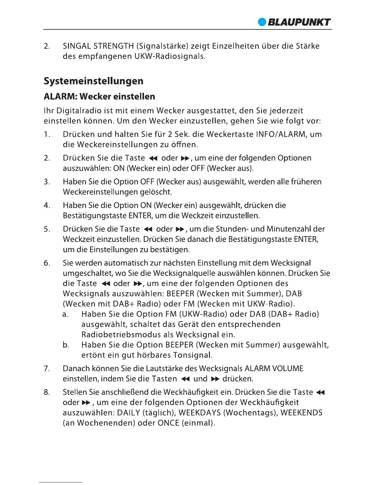 Blaupunkt RX+ 12 - System Settings; Setting the Alarm Clock