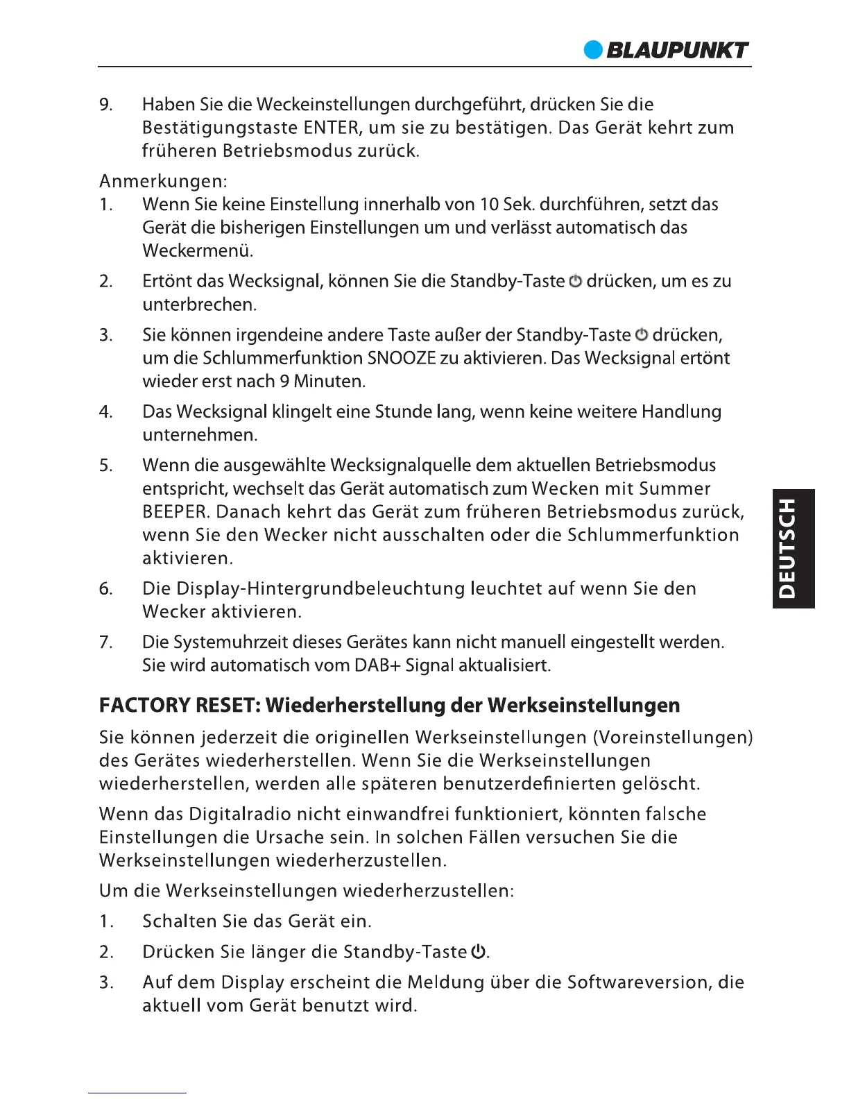 Blaupunkt RX+ 12 - System Configuration; Restoring Factory Settings