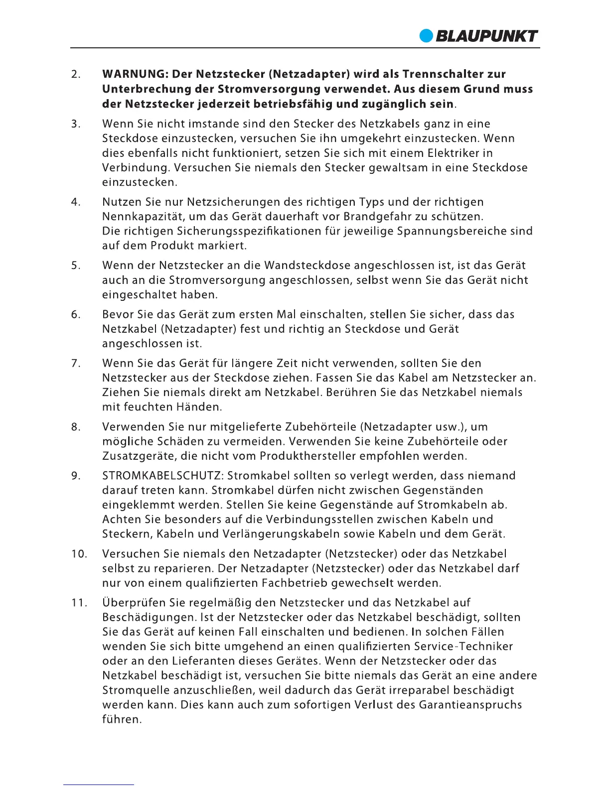 Blaupunkt RX+ 12 - Electrical Safety and Usage; Power Safety Precautions
