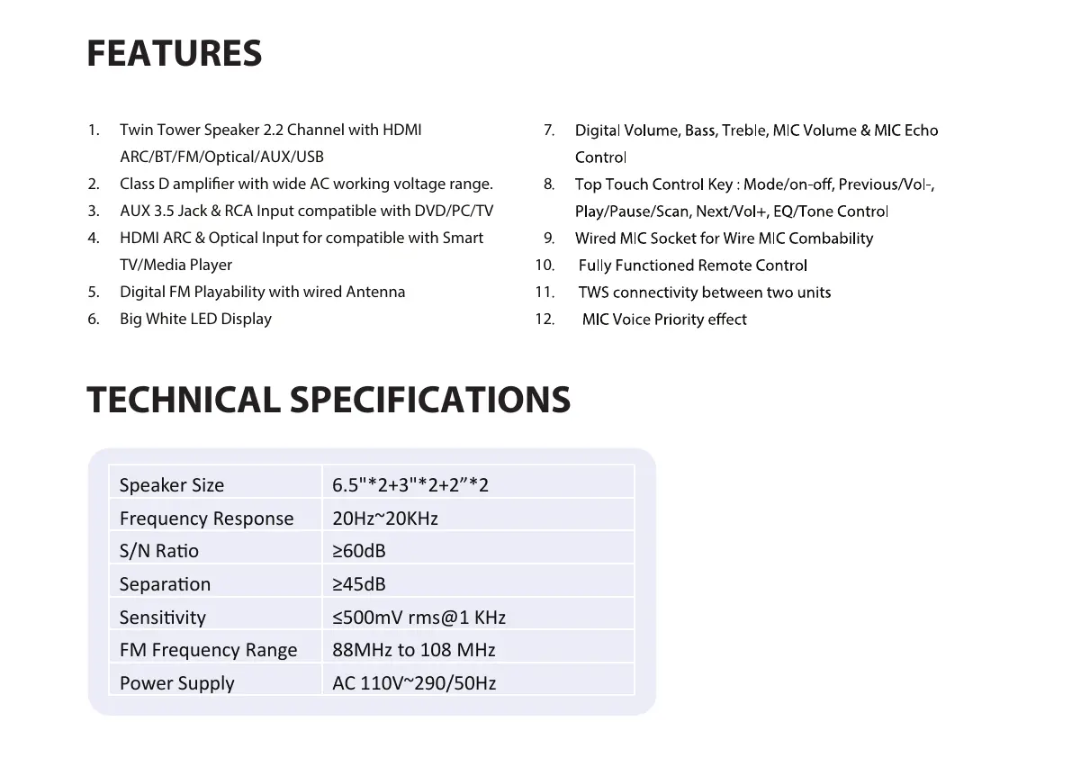 1. Twin Tower Speaker 2.2 Channel with HDMI