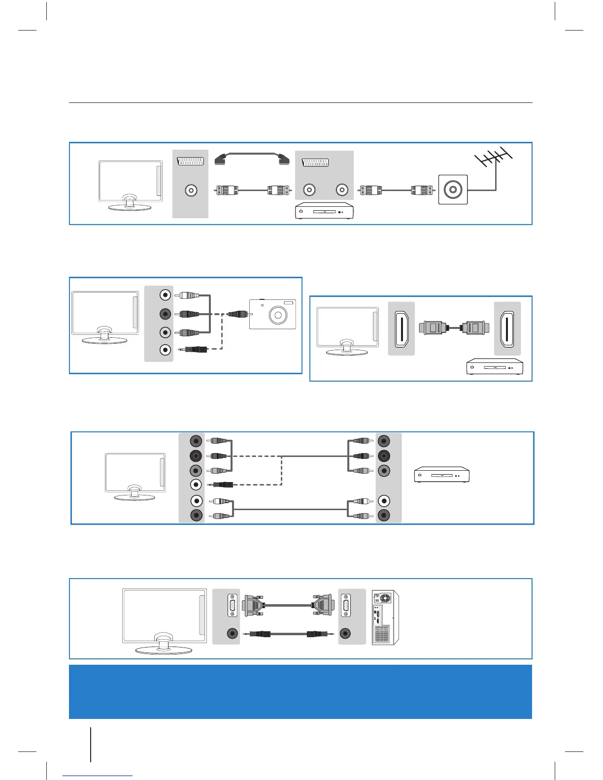 Verbinden Sie das VGA Kabel (nicht mitgeliefert) mit dem TV und anschließend mit Ihrem PC oder Laptop. Um die TV Lautsprecher