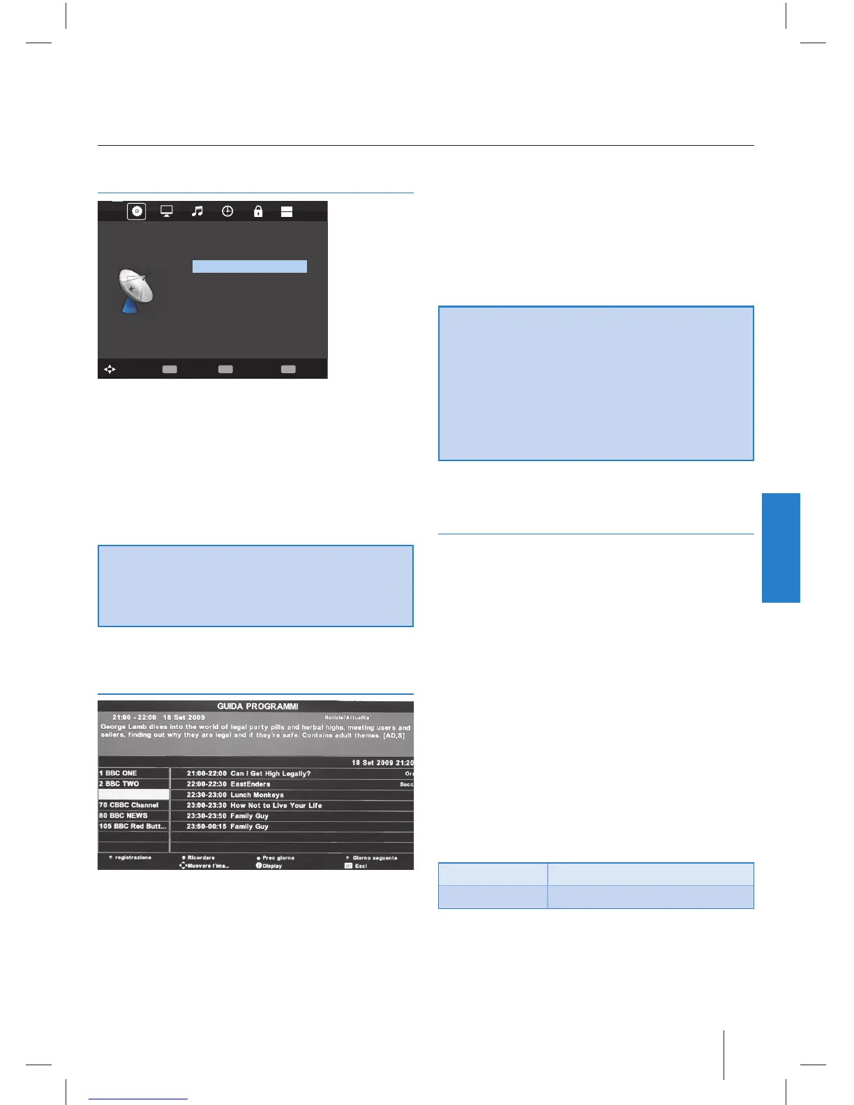 Impiego del menu TV