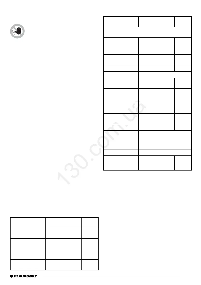 Använd högtalare med impedansen 2-4 Ω (se tabell resp.