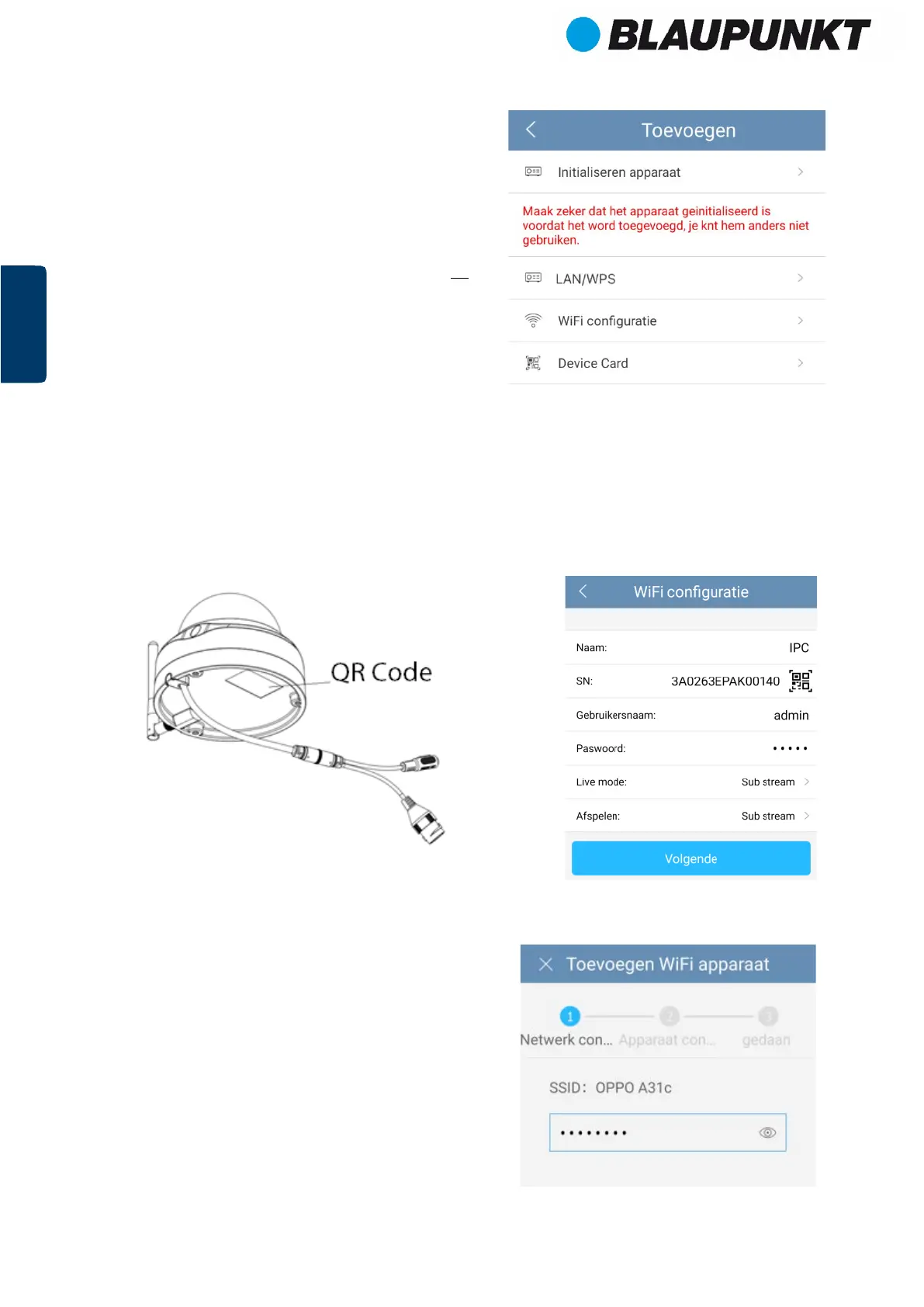 Kies een naam voor de camera en scan de QR code op de camera. Klik nu op “Volgende”.