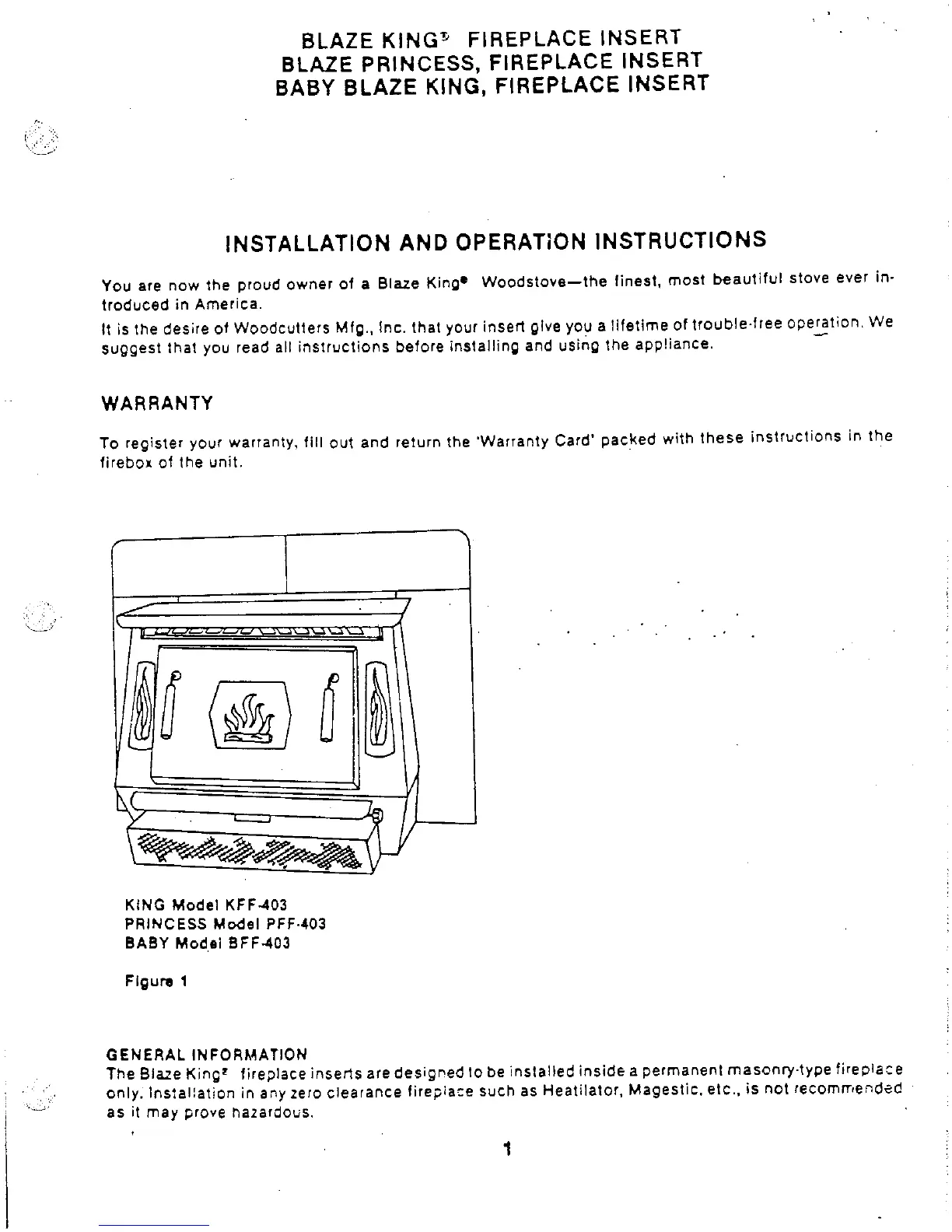 Blaze King KFF-403 - Product Overview and Warranty; Warranty