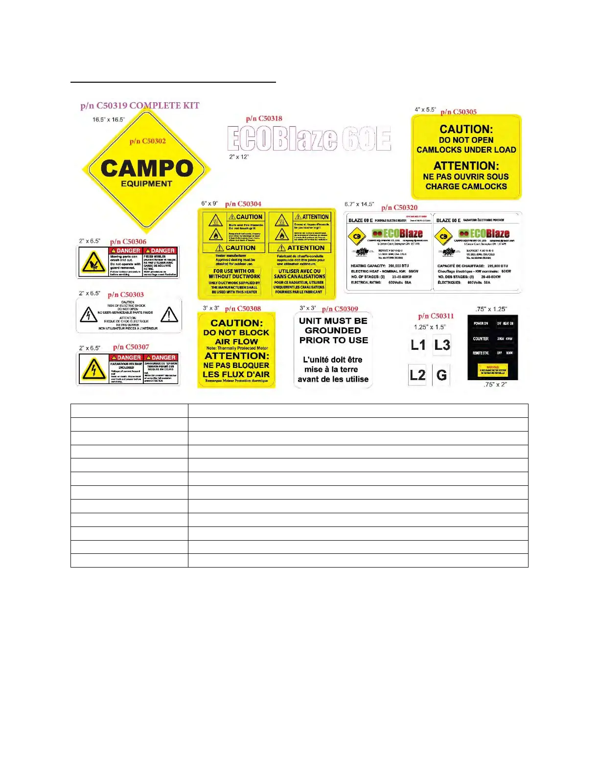 C50319 BLAZE60E600VDECALKIT
