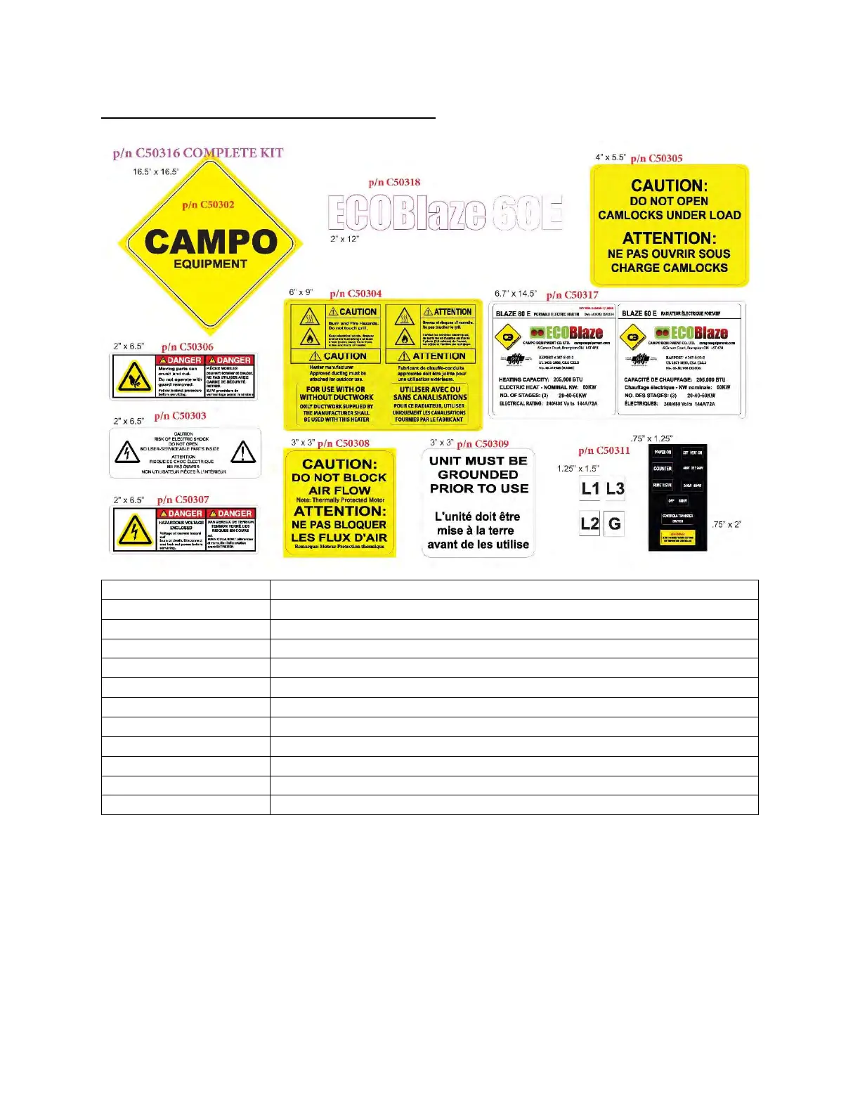 C50316 BLAZE60E240/480VDECALKIT
