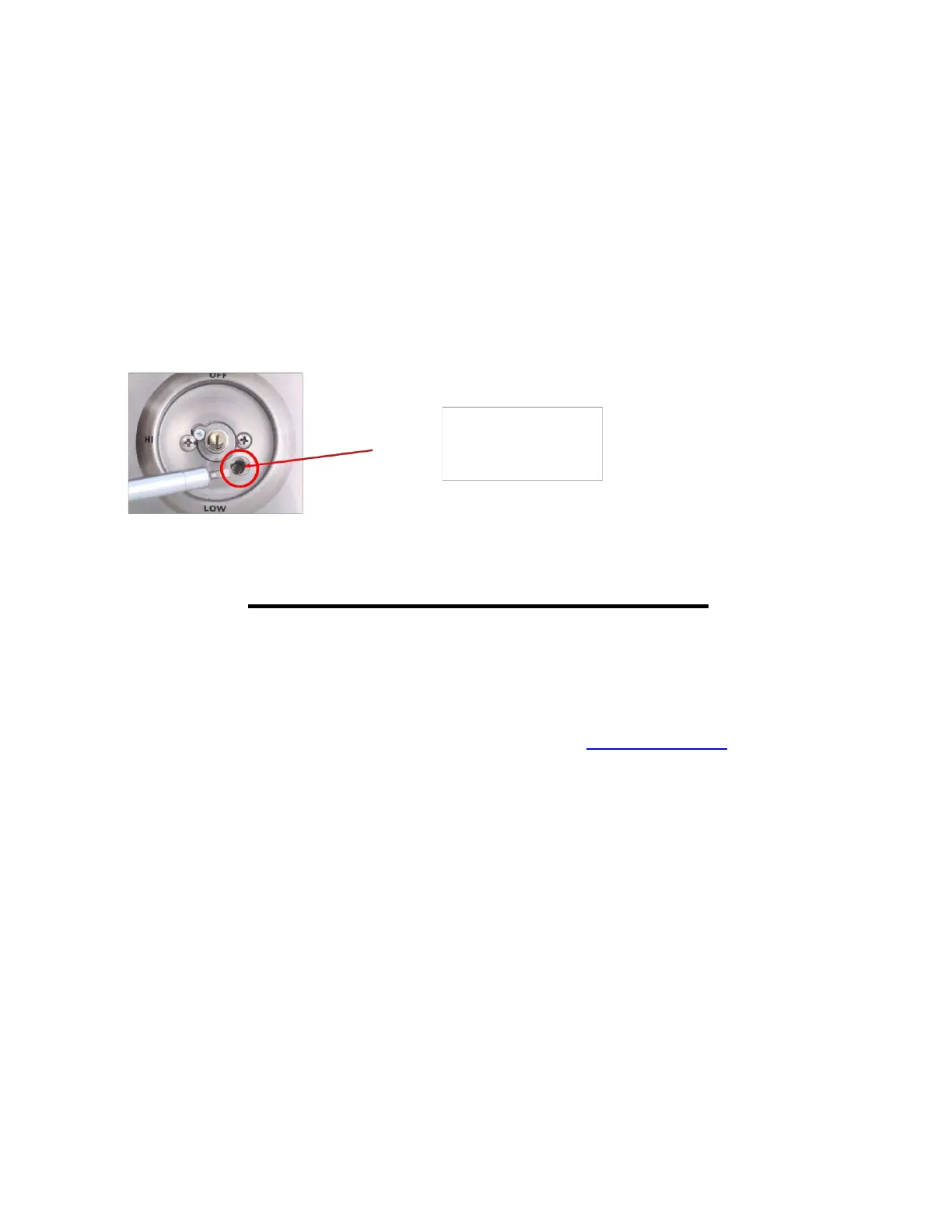 LOW setting and adjust the screw located under the knob on the front of the valve using a flat head